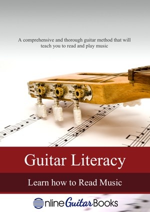 Guitar Literacy is an eBook that will teach you how to read music on the guitar. You'll learn rhythms, notation, theory, key signatures and much more. Every new concept is explained in great detail with diagrams and exercises.